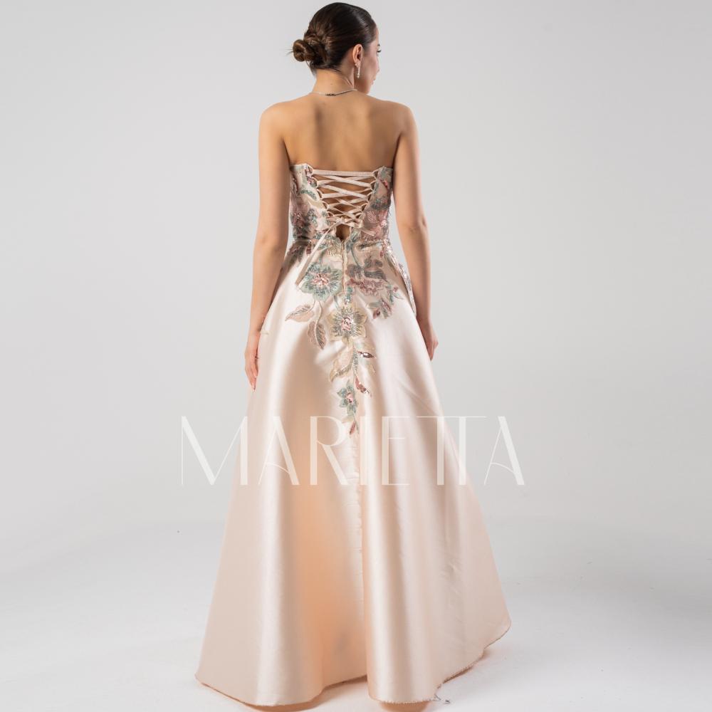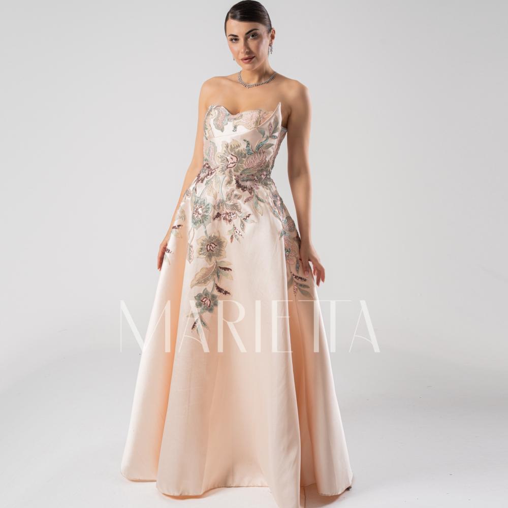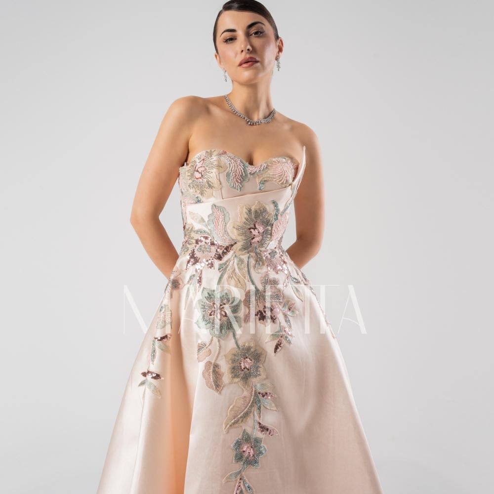 فستان سهرة زهري من ماريتا يُجسّد المعنى الحقيقي للرقي والأنوثة. تصميمه الفريد يجمع بين البساطة والجاذبية في تناغم مثالي. كل تفاصيله تم اختيارها بعناية لإبراز جمالك الطبيعي.